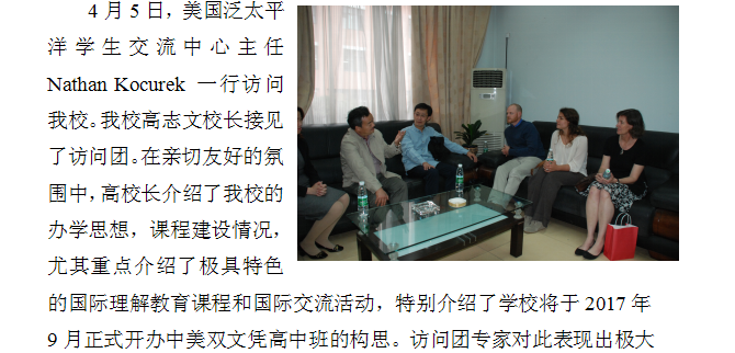 美国泛太平洋学生交流中心主任Nathan Kocurek 一行访问我校
