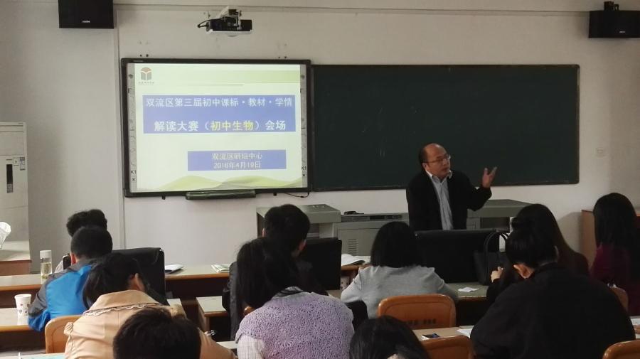 为了落实和推进区教育局提出的“聚焦课程课堂、追求卓越品质”的主题活动,进一步深化课程改革,以课程改革为抓手,以建设高效课堂为落脚点,加强基于课程标准教学的管理,提升初中教学质量,促进初中教育教学均衡、优质发展。2016年4月19日,双流区第三届初中课标.教材.学情解读大赛(初中七年级生物)在双流区研培中心举行。