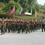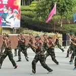 检阅完毕后,分列式开始。整齐的步伐、昂扬的面貌、飒爽的英姿展现了为期六天的军训成果,展现了双中实验学子的风采。在军事汇报表演中,男生队列示范、女生队列示范、男生军体拳、女生匕首操等都赢得了阵阵掌声。