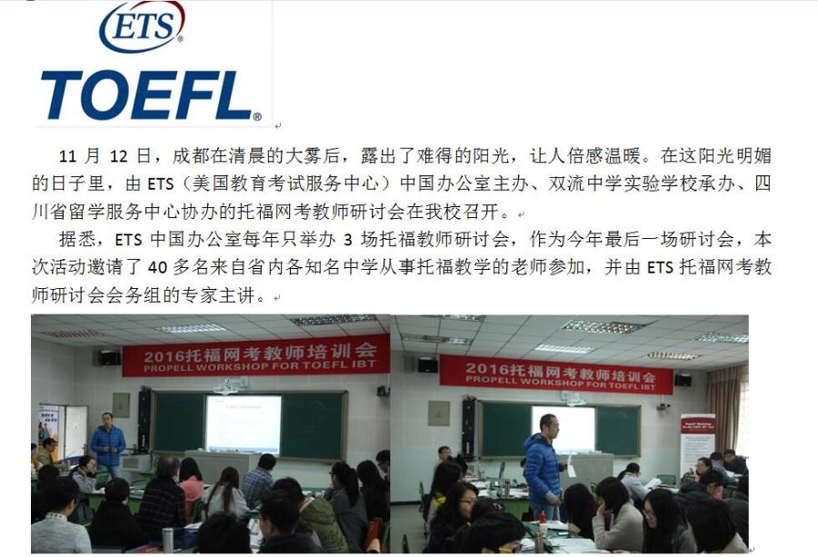 2016年托福网考教师研讨会在我校成功举办