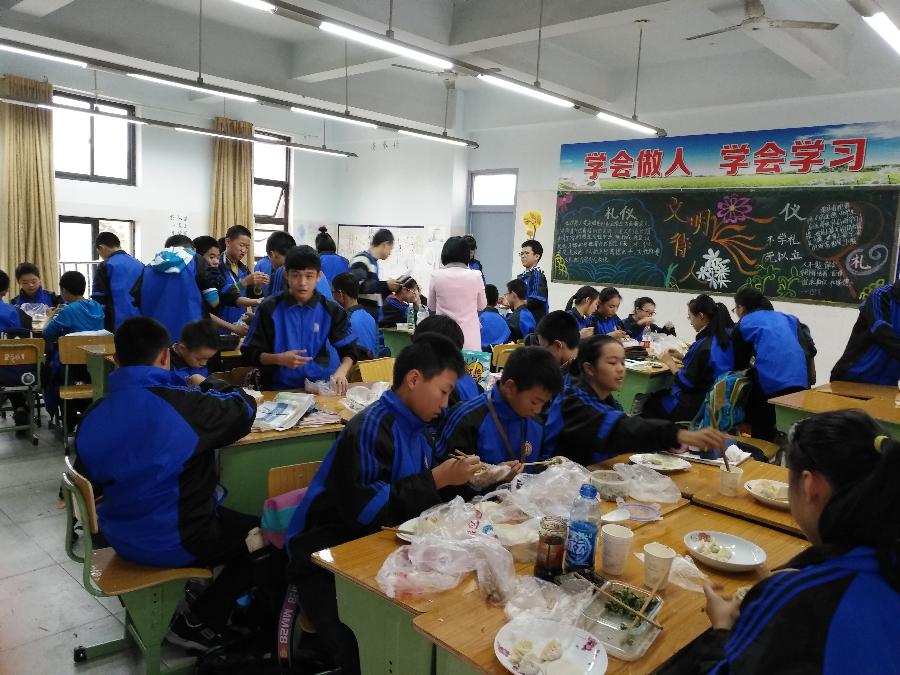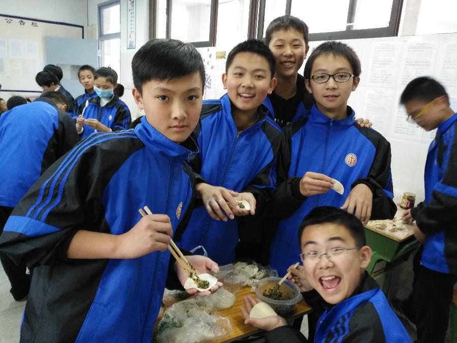 包完之后,班主任带领孩子们在教室煮饺子、吃饺子。细看,饺子的大小不一,形状也各异,但孩子们吃的真香!他们真正收获的不仅仅只是如何去完成包饺子这个任务,更为重要的是,要让他们体会到劳动的光荣和快乐。我们更鼓励孩子,回到家中亲手为父母包上一顿饺子。即使形状、味道不如餐馆里好,但父母肯定会为自己的孩子感到骄傲和自豪! (付丽莎)