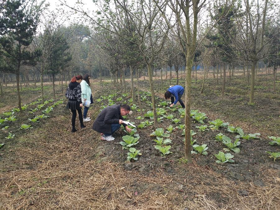 紧接着,我们到达了彭镇蔬菜种植基地。在和基地技术指导员进行了近期蔬菜长势的交流后,我们来到了各个班级的种植区域。李英华老师带领课题组老师们对两个班级的蔬菜长势的优劣进行了具体的分析,包括哪些品种长势较好,哪些较差;同一品种的蔬菜为何在不同的班级长势不一等。据老师们分析,除了种植当天种子的种植深度,种植方式之外,更重要的是后期的维护够工作是否到位。