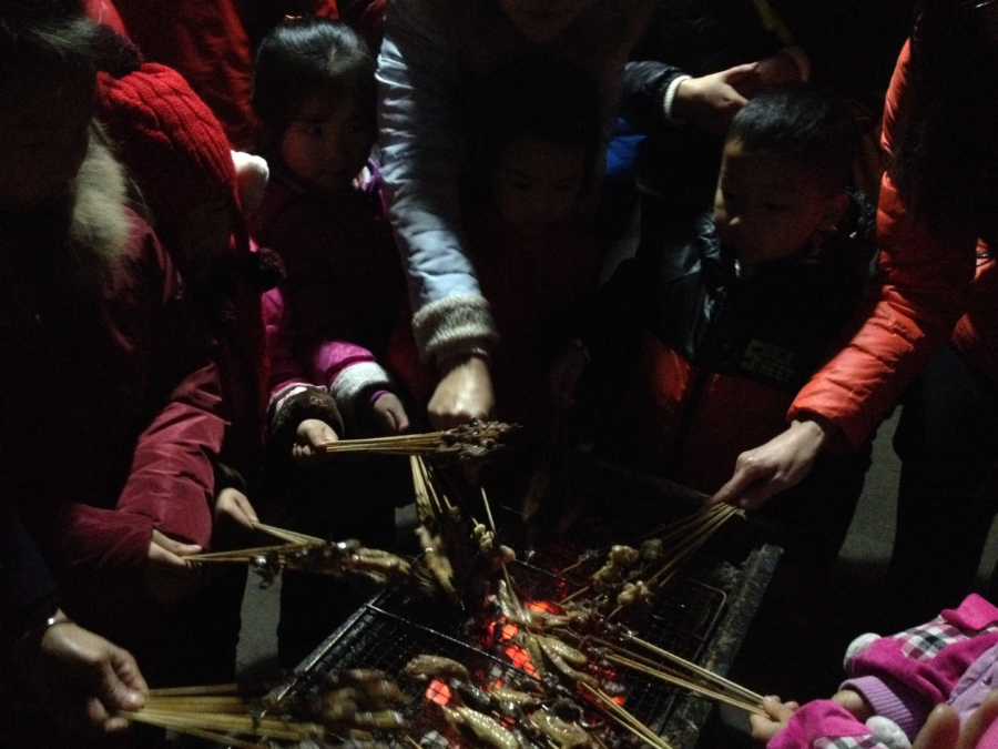 野鸡坪的夜晚寒风凛凛,酒店的野外烧烤区却热火朝天。老师们有的围着火堆看工作人员烤羊肉,有的围在烧烤架前自己玩起了烧烤,有的拿着话筒尽情歌唱,终于从日常繁忙的工作中得到了暂时的放松,孩子们开心地跑来跑去,欢声笑语响彻云霄……