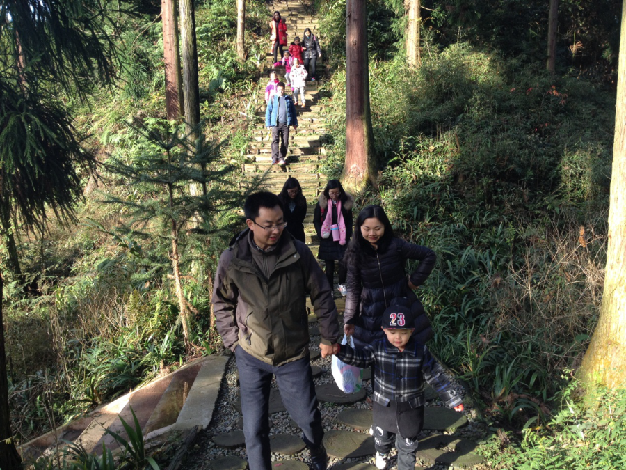 天公作美,第二天竟然是个难得的艳阳天。老师们三五成群地漫步在森林中的林间小道,在天然氧吧中大口地呼吸着新鲜空气,又是一路欢声笑语。