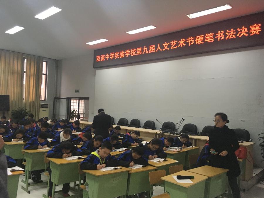 11月9日下午,我校第九届人文艺术节硬笔书法决赛在演讲厅拉开帷幕。来自七年级各班的60多位同学在一节课的时间内完成指定篇目的书写。比赛正式开始前,王雯雯老师宣布了比赛要求。各位同学在赛场上静心书写,只听得到笔尖摩擦纸张的沙沙声。语文组各位老师到场观赛。比赛评委老师为王雯雯、罗金莉和李欣。