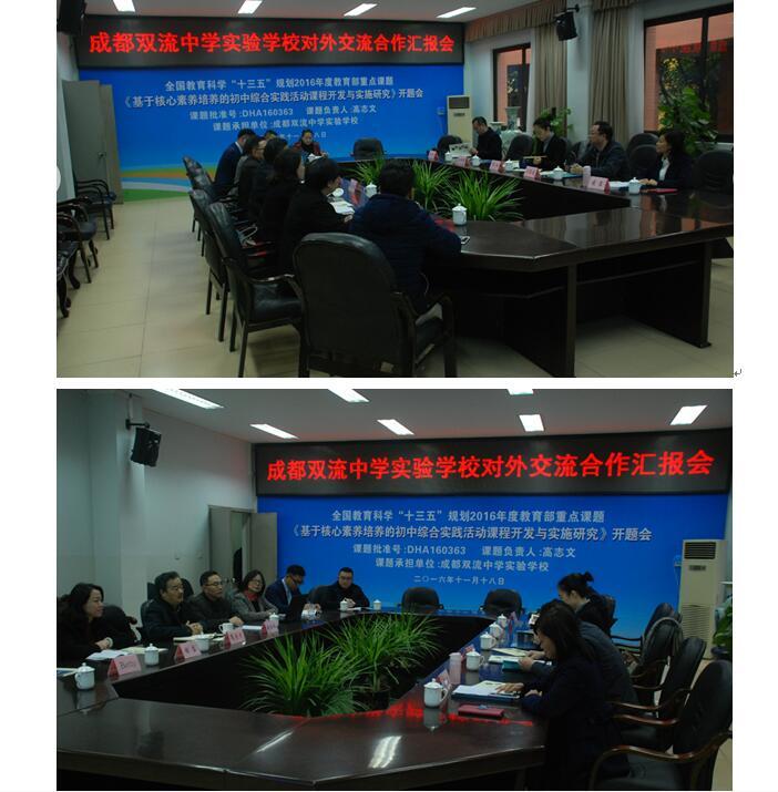 2016年12月1日下午,四川省教育厅对外合作交流处贺羽副处长,成都市教育局对外交流合作处闫益友处长,双流区教育局王金萍副局长和双流局教育局外宣科凌蓉科长一行莅临成都双流中学实验学校,出席了本次对外交流合作汇报会暨我校中美高中课程建设调研工作。