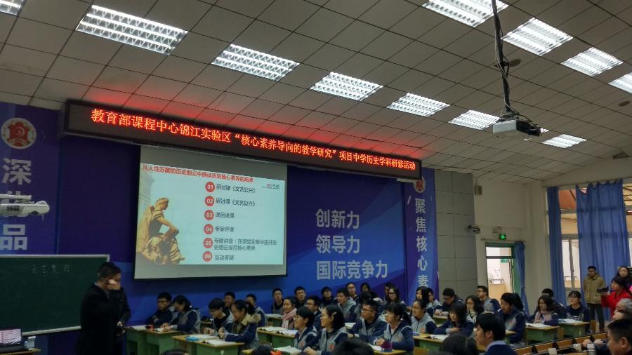 周五(12月9日),全市中学历史教研活动在成都七中嘉祥外国语学校进行,我校部分历史教师在教研员匡世国带领下参加了本次活动。