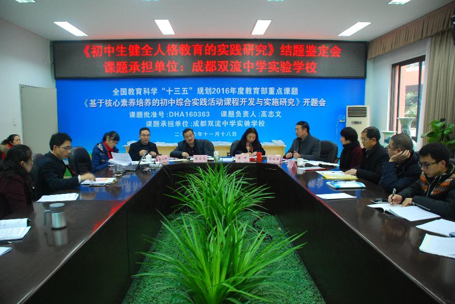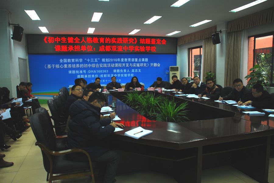 2016年12月15日上午,由成都双流中学实验学校独立承担的成都市双流区教育科研课题《初中生健全人格教育的实践研究》现场结题鉴定会在学校第三会议室隆重举行。四川师范大学教育与心理学院戴艳教授,四川省教科所科研管理室高级教师、四川省教育学会副秘书长刘怀明老师和成都市双流区研培中心理论室易恩主任担任课题结题鉴定专家。会议由成都双流中学实验学校常务副校长张润林主持,学校课题组主研人员代表36人参会。