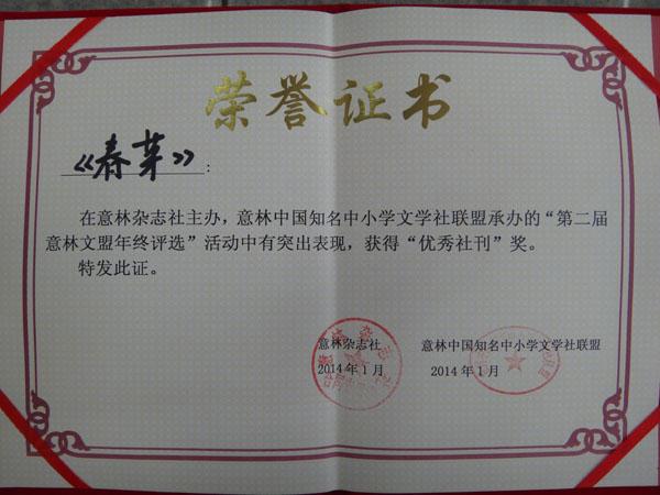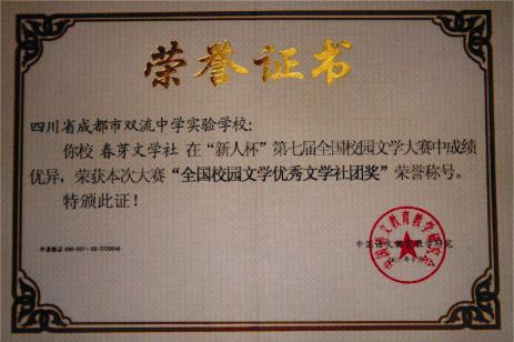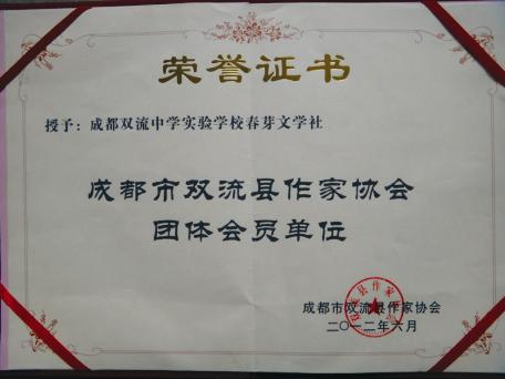 双流中学实验学校春芽文学社荣誉