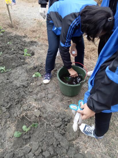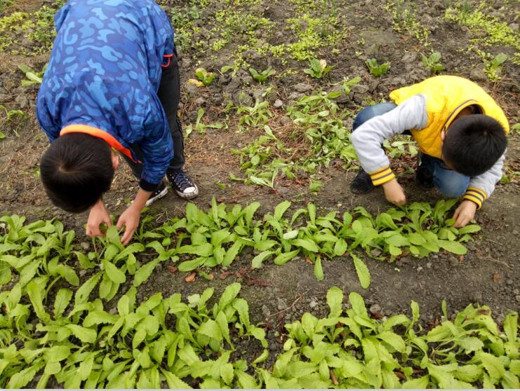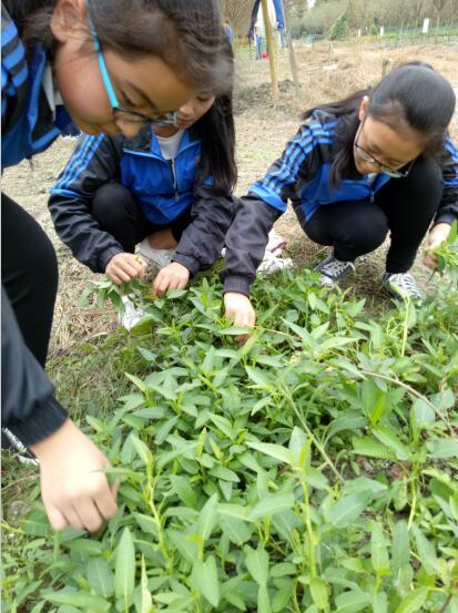 每周一次菜园看护,学生可不敢马虎。除草、浇水学生细心的呵护着基地的“宝贝”。