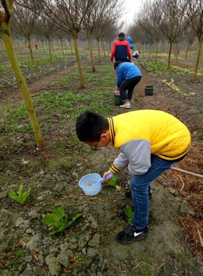 基地种植比玩“游戏农场”有趣多了,除草、挖地、栽种、浇水、施肥,小组成员分工合作,忙得不亦说乎。