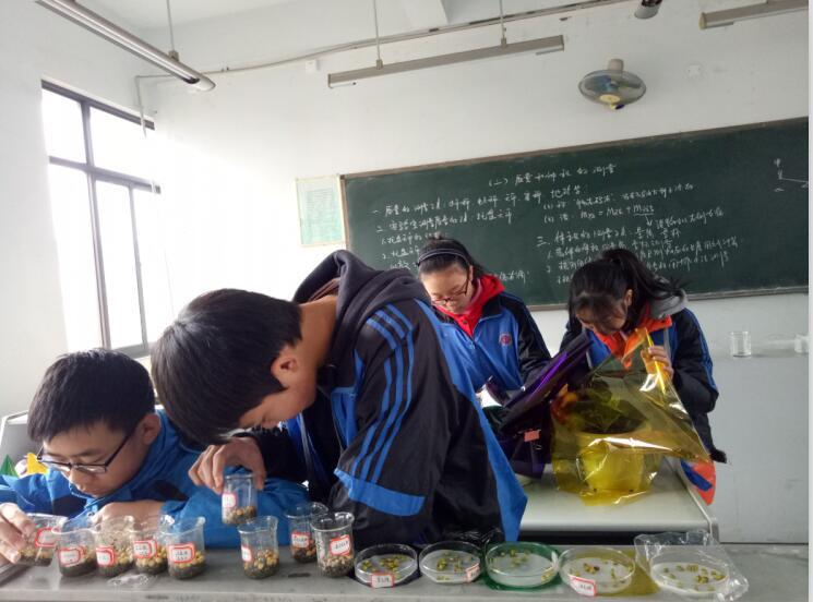 学生在种植过程中发现了一些感兴趣的问题,于是将问题转化为课题,在基地开展了《探究豌豆的发芽率》、《探究色光对蔬菜生长的影响》等课题。