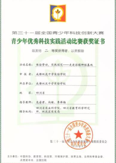 在第三十一届青少年科技创新大赛中,李举梅、龙姿君和何向老师指导学生编写的蔬菜种植活动方案荣获四川省一等奖、全国二等奖。