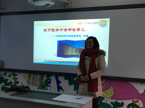 此次交流活动仍然采用听课、评课的形式进行, 课后,相关学科教研组老师参与了深入的交流探讨,各位老师也就该课进行了中肯的点评。另外,双中实验学校老师还就一些教学难点和中考迎考复习工作作了详细指导和交流,余蕾老师还通过精心制作的ppt向老师们作了精彩讲解和指导,参加活动的老师们受益匪浅。黄龙溪学校的领导和老师对双中实验学校教育集团开展的教师交流活动非常欢迎。