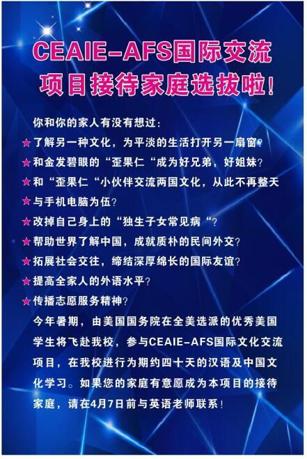 CEAIE-AFS国际交流项目接待家庭选拔开始啦!