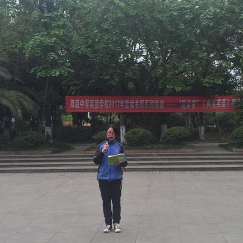 2017年4月19日下午第三节课后,双流中学实验学校2017年度“读书周”系列活动之“朗读者”风采展示活动英语朗诵比赛在学校英语角小广场举行。这是本次读书周系列活动朗读者活动之一,参加这次朗读比赛的选手均来自七八年级。鉴于《典范英语》是目前我校学生的主要英语课外读物,本次比赛由同学们为大家展示自己对《典范英语7》各个故事的理解。参赛者们发音清晰、朗读流利、富有感情的朗读给大家留下了深刻的印象。这说明了同学们在平时课余时间里朗读练习认真,语感得到了增加。本次活动让同学生展示了自己的风采以及朗读收获。也将会进一步调动同学们学习英语的积极性,夯实学生课外阅读、朗读习惯,培养学生的口头表达能力,增强同学们的自信心。(王小玲)